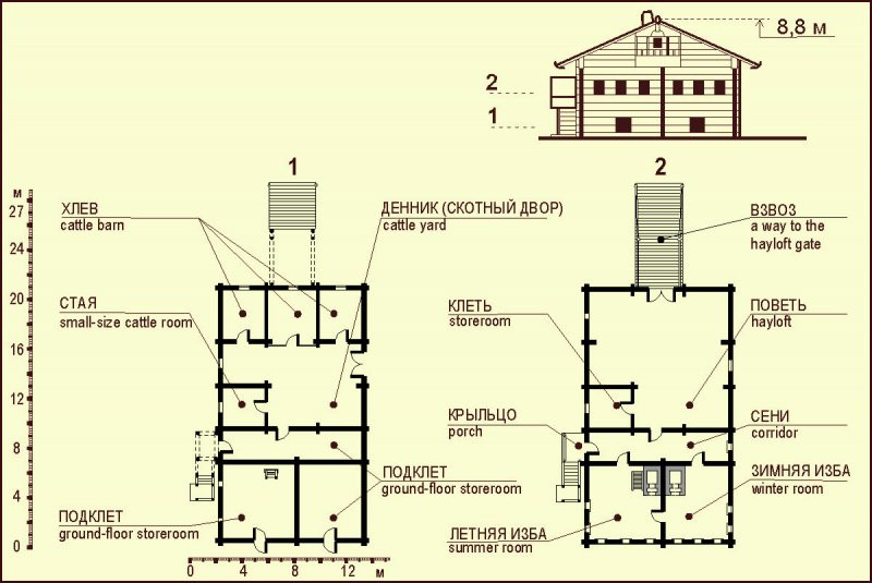 Кровля над домом тесовая двускатная «по курицами и потокам».