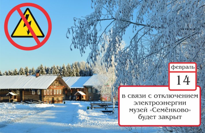 11.02.2019 Уважаемые посетители! 14 февраля 2019 года музей закрыт для посетителей в связи с отключением электроэнергии. Приносим извинения за возможные неудобства.