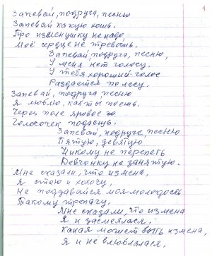 Но чудеса на этом не закончились… Спустя меньше месяца Виктор Шавырин передал музею семейный архив частушек, записанных в деревне Кишкино Вологодского района Татьяной Васильевной Касаткиной (1933 г.р.) и ее подругой Ксенией Николаевной Верещагиной (1933 г.р.)