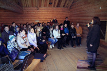 А после собрались на просторной повети дома Уланова, чтобы вспомнить масленицу и то, с каким упорством к ней готовились. Судите сами: за время подготовительного периода состоялось 16 репетиций. Это занятия по фольклору, сценической речи и даже по сценическому бою. Кадры кинохроники и фото-слайды напомнили о тех днях, вызвав чрезвычайное оживление собравшихся. В удивительной атмосфере всеобщего единения волонтёры получили благодарственные письма от музея "Семёнково". Радостно, что количество молодых и активных, преданных музею людей, за год выросло более, чем в два раза. Новичков посвятили в волонтёры музея "Семёнково" в соответствии с предусмотренным по такому случаю ритуалом, а старожилы были отмечены пластиковой картой Друга музея "Семёнково".