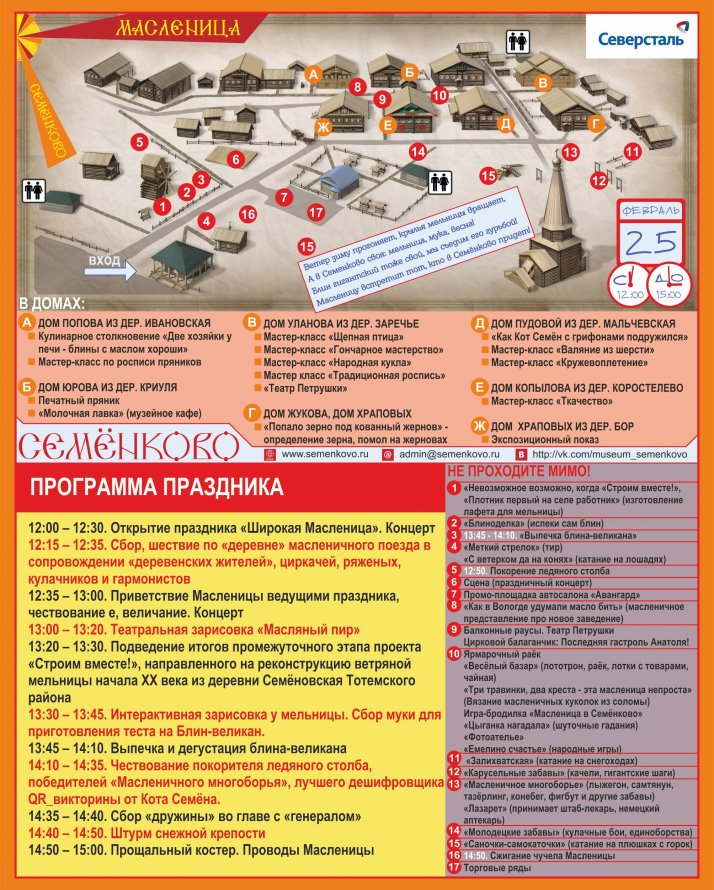 Программа праздника "Широкая Масленица" на 25 февраля 2017 года (Суббота)