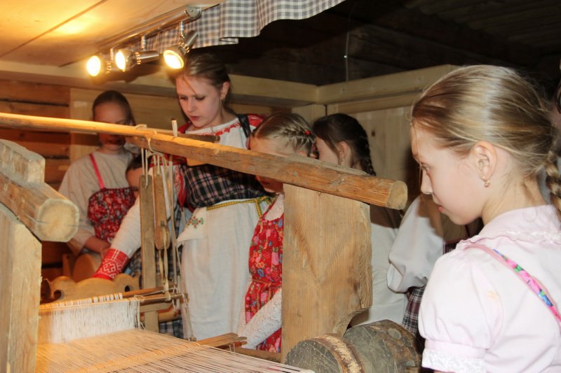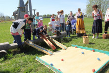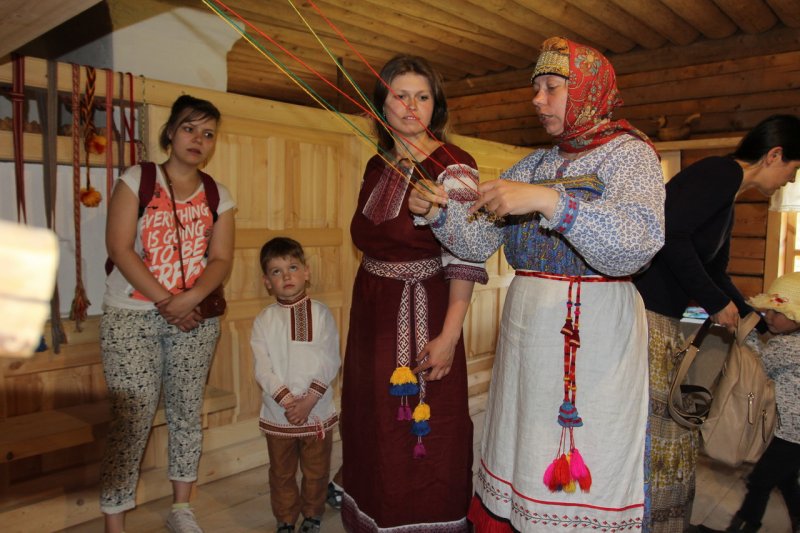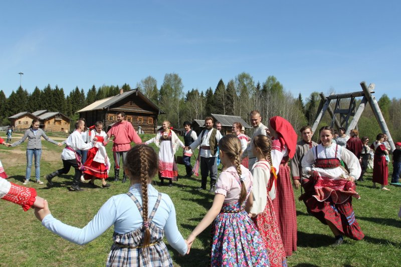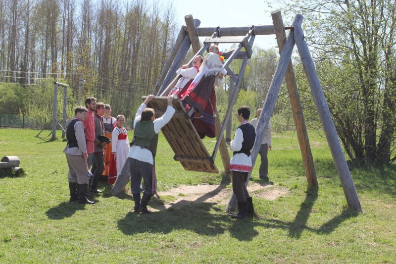 У высоких качелей было многолюдно. Парни в обмен на крашеные яйца качали девушек и кружили в плясках. Целовальные игры, хороводы, пение частушек под гармонь - всем этим жила деревня в прежние времена, всем этим живёт музей сегодня.