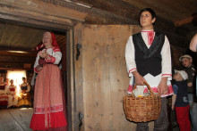 Кто-то из посетителей музея оказался в самой гуще событий. Женихи приехали невесту выкупать, ведь с Фомина воскресения в церкви разрешалось Таинство Венчания. Другие гости застали почтенную хозяйку Аграфену Семёновну в момент приёма молодожёнов - дорогих дочки и зятя.