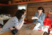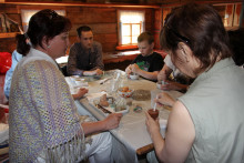 Скучать на празднике не пришлось никому… Особой популярностью пользовалась экскурсионная программа «Приоткрывая двери в храм». Самые маленькие мастерили пасхальные открытки. Взрослые вспоминали историю происхождения иконы Спаса Нерукотворного и узнали много нового о минеральных красках, использовавшихся в иконописи, из уст научного сотрудника художественного отдела Вологодского музея-заповедника Лубенцовой Елены Викторовны. Желающие приложили некоторые усилия, чтобы изготовить коричневую краску из широко распространенного на Вологодчине минерала - охры.