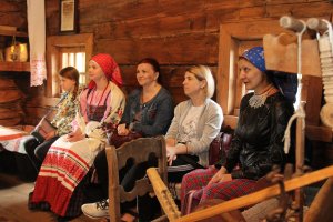 Следующим этапом погружения стала лекция с элементами практикума "Традиционный народный костюм". Завершилась встреча мастер-классом по ткачеству и изготовлению сувенирной набойки.