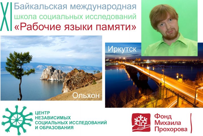 В сентябре 2018 года в Иркутске и Ольхоне состоится интересное научное событие - XI Байкальская международная школа социальных исследований «Рабочие языки памяти». Организатором выступает «Центр независимых социальных исследований и образования» (г. Иркутск) при поддержке Фонда Михаила Прохорова. Список партнеров внушает уважение: Russian Studies Workshop at Indiana University, Иркутский государственный университет, Фонд имени Фридриха Науманна и Фонд имени Генриха Бёлля.