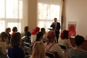 С приветственным словом к гостям обратился заместитель начальника департамента культуры и туризма Дмитрий Сергеевич Шевцов. Далее он передал микрофон профессору Вологодского государственного университета, кандидату искусствоведения - Галине Петровне Парадовской. Она подчеркнула важность и необходимость сохранения народной культуры - как важнейшего ресурса развития Вологодского региона, в том числе и с туристической точки зрения.
