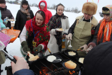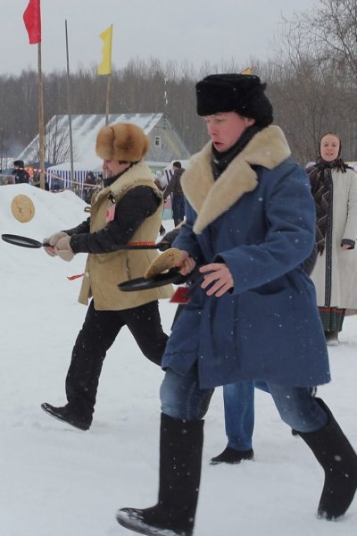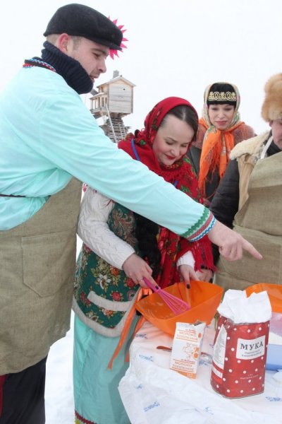 То, что первое блюдо на масленицу блины, знают все. Но умеют ли молодые жёны их выпекать - вопрос. Именно это и проверяли устроители программы в первом конкурсе «Хозяйка у печи – блины на стол мечи». Молодухи не растерялись и на предложение замесить тесто - быстро справились с ним. Ни холодный колючий ветер, ни любопытные взгляды посетителей музея не сломили энтузиазм участниц. И вот уже на открытом огне жарятся первые блины на радость мужьям и не только им.