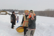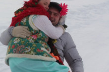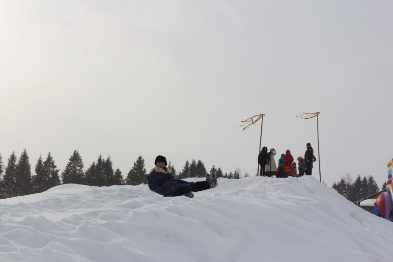 Полакомившись, молодые отправились покорять горку. Катались "на лён долгий", на урожай щедрый. Задорно выкрикивали заклички, призывая весну, да целовались, утверждая любовь!