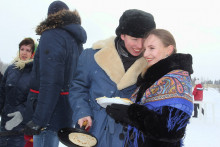 Известно, на масленицу испокон веков всё внимание приковано к "новожёнам". На этот раз пять пар, сыгравших свадьбу в музее, откликнулись на приглашение особым образом, со вкусом к традиции, провести время.