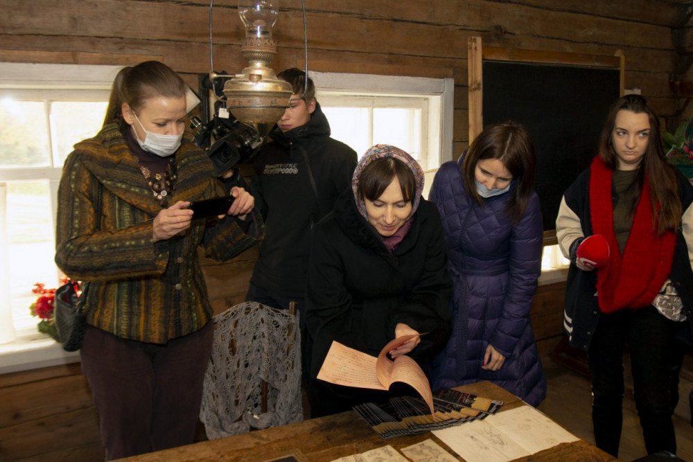 "Сложность экспозиционной задачи заключалась, с одной стороны – в обеспечении безопасности музейных предметов, с другой – максимального доступа к ней посетителям. Учитывая небольшую площадь горницы, а также наличие входов в неё с двух сторон, было принято решение превратить комнату в своеобразную витрину, рассматривать интерьер которой можно с разных позиций: как со стороны школьного класса через застеклённый дверной проём, так и со стороны сеней дома", - прокомментировала заведующий музеем Наталья Киршина.