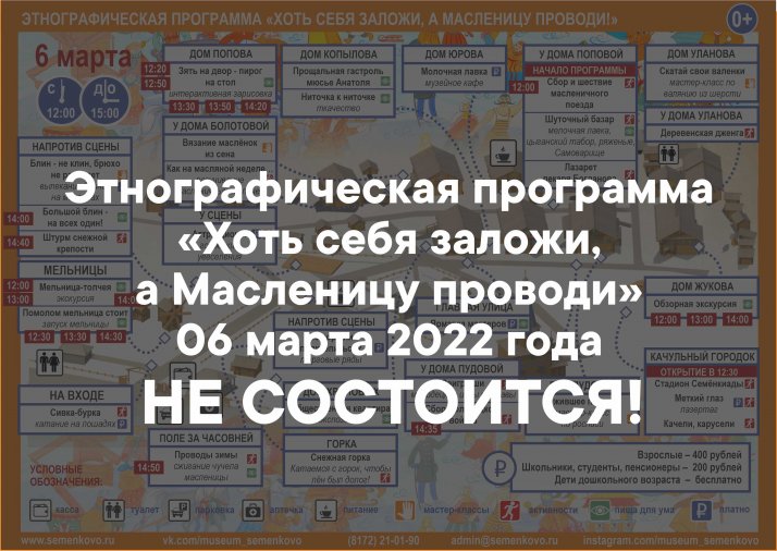 3 марта 2022 года музей получил официальный отказ от УМВД Российской Федерации по Вологодской области на проведение этнографической программы «Как масленицу встретишь, так и новый год проведешь».