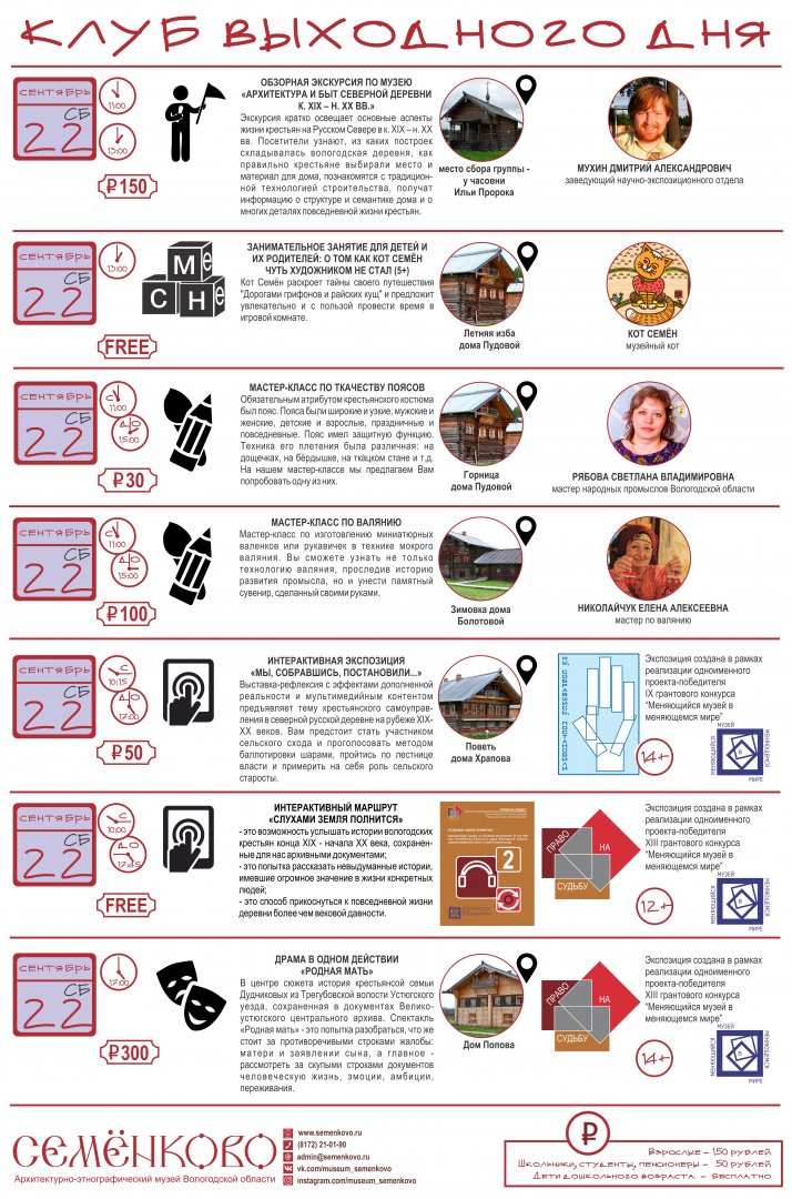 Программа "Клуба выходного дня" на 22 сентября 2018 года