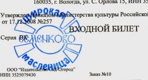 Стоимость билетов на праздник "Широкая Масленица":