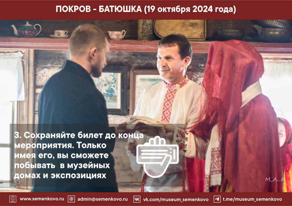 Уважаемые посетители! Приглашаем вас 19 октября в 12 часов на праздничную этнографическую программу «Покров - Батюшка»!