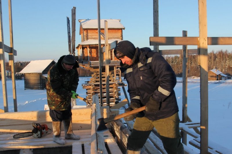 В то время, как многие вологжане желали бы более продолжительного сохранения положительных температур за окном, в музее «Семёнково» ждали наступления зимы. И дождались. Установившаяся морозная погода позволила начать заготовку древесины, а вместе с ней продолжились работы по воссозданию мельницы-«столбовки» с толчеёй из деревни Семеновская Тотемского района.