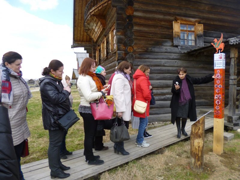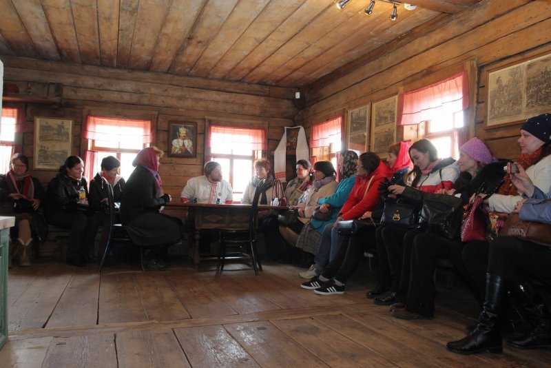 Они посетили созданное в 2016 году игровое пространство Дома мастеров, повстречались с "жителями" исторической деревни, перенесясь в прошлое на сто лет назад. В торговой лавке дома Копылова застали за работой Михайла Васильевича Копылова, познакомились с его сыном, женившемся сразу после возвращения из рекрутов, узнали от хозяйки, расторопной Маремьянихи, о желании оклеить избу обоями. Через судьбу конкретной семьи музейщики познакомились с историей дома и проектом "Сохраним русский дом на Русском Севере". Этим путешествие во времени не ограничилось. Дальше гостей ждала встреча с маслоделом, суровый разговор с сельским старостой, повторительные курсы в сельской школе.