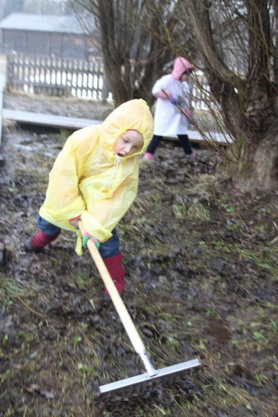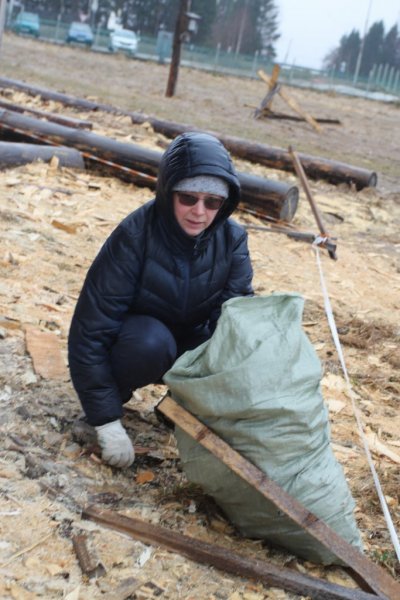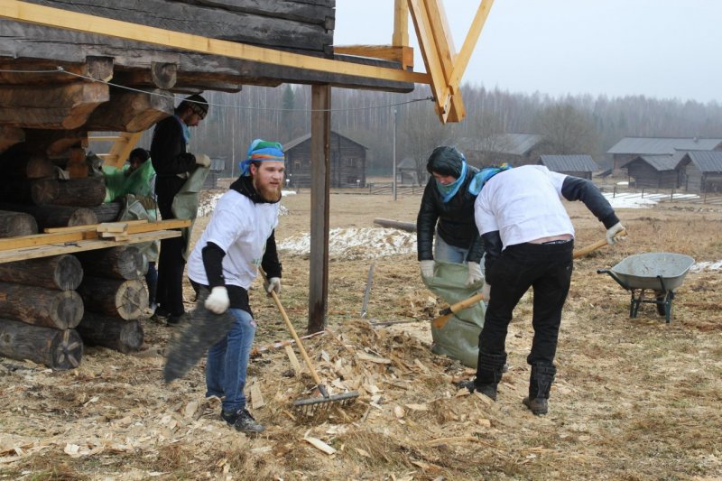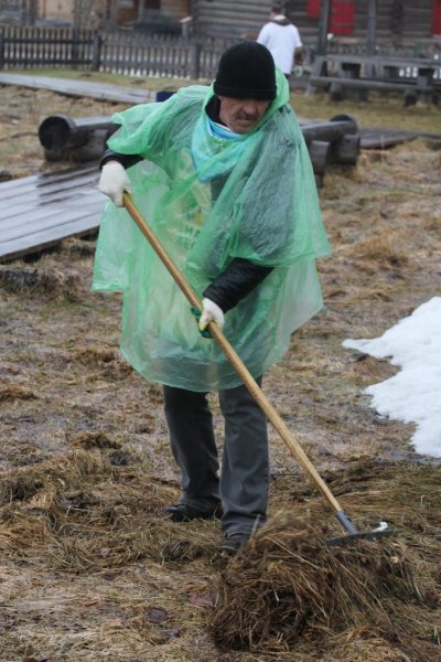 «На улице снег и ливень, а у нас субботник. Готовимся к труду и обороне», - иронично заметила сотрудник музея Ольга Осовская, разместив пост в социальной сети ВКонтакте в 11.57 по Московскому времени. Ровно в 12.00 часов герои дня собрались в центре музея. Настроение и боевой дух собравшихся поддерживали бодрящие мотивы хорошо известных песен, раздающиеся в противовес заговору непредсказуемой северной весны. Динамичная официальная часть, распределение обязанностей, общее фото на память, и вот уже кипит работа: мелькают грабли и лопаты, снуют мётлы, и наполняются мешки мусором. Взявшись за дело всем миром, быстро управились с предусмотренным объёмом работ.