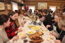 Промокшие, уставшие «помочане» по итогам дня собрались в крестьянской избе. И было здесь место и детям, и взрослым, и бывалым участникам акции «Весенние помочи. Зелёная Весна», и новичкам. Хозяева отблагодарили работников за отзывчивость и упорство. Горячие традиционные «шти», ржаные шаньги прямо из русской печки, картошка с разносолами – что может быть лучше после трудового дня?! Отдых в компании людей, связанных общими воспоминаниями, согрел душу и сердце, наполнил этот день особым смыслом, осознанием сопричастности к сохранению памяти об историческом прошлом, о северной деревне, где жила взаимопомощь и взаимовыручка.