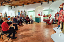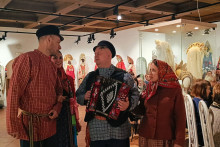 На исходе морозная зима, и она не торопится уходить. По народным представлениям её следует должным образом проводить. И тут в залах художественного отдела послышалась гармонь, зазвучали звонкие голоса, которые перенесли собравшихся в русскую деревню. Молодёжь в эту пору по дворам ходит, «виники-опарыши, голики- омётыши» на масленичный костёр собирает. Вот уж и чучело масленицы готово. Её, Масленицу дорогую, «Дуню белую, Дуню румяную», чествовали, величали, на двор широкой зазывали... Ожившие сцены из жизни деревни задали тон встрече, послужили своеобразной иллюстрацией к книге.