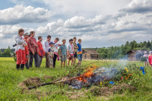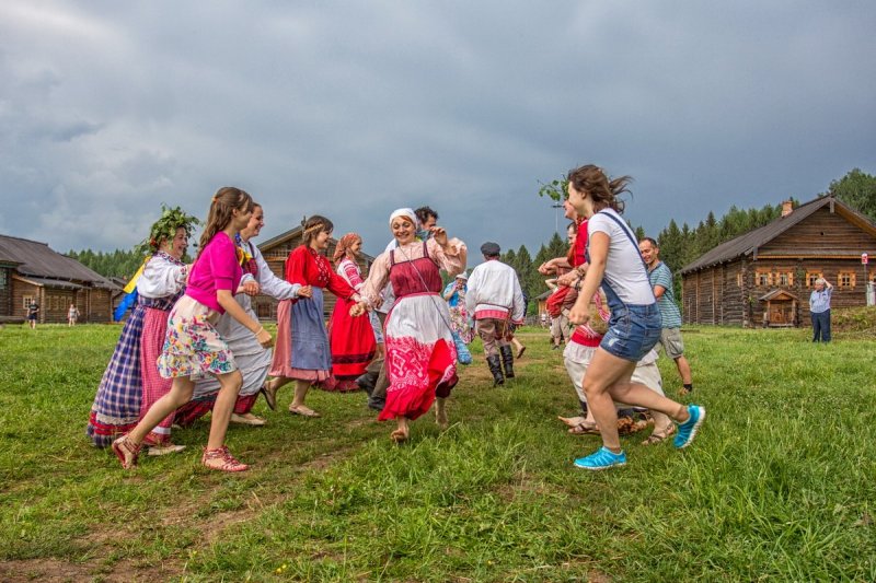 Яркой зеленью встретит музейная деревня дорогих гостей. Распахнутся врата Георгиевской церкви, и прольётся благозвучное пение в исполнении Хоровой академической капеллы им. В.М. Сергеева под руководством Назимовой Елены Львовны. В храме, празднично устланном травой, украшенном ветками берёзы и цветами, под стройное многоголосие утвердится торжество веры и силы духа.