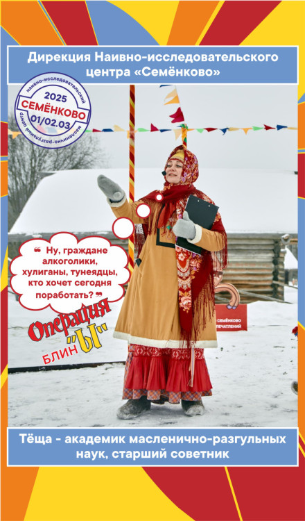 Отсчитываем дни до праздника масленицы и представляем вашему вниманию персонал Наивно-исследовательского (масленично-разгульного) центра «Семёнково»!