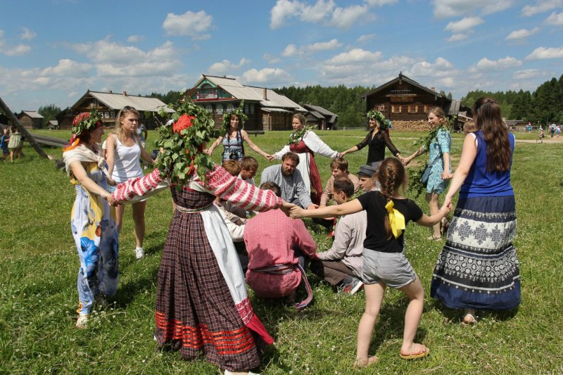 С самого утра деревня Семенково зажила приготовлениями к светлому празднику Троицы: девушки украшали дома веточками березы, наряжали лентами, парни готовили игры и увеселения для гостей, а бабоньки и мужики ставили братчину - топили самовар, варили яйца, делали угощение на всю деревню.