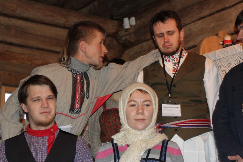Мы уже успели убедиться, что все они незаурядные личности - яркие, талантливые, готовые учиться и экспериментировать. Поэтому, по сложившейся традиции, встреча началась с ролевой игры «Приезд женихов». Выбор материала не случаен, ведь именно в «зимний мясоед» (время между Рождественским и Великим постами) чаще всего в прежние времена совершались свадьбы. И вот наши друзья неожиданно для себя, в соответствии со жребием, разделились на сторону жениха и невесты. Кто-то стал тысяцким, а кому-то выпала роль родителей молодых...