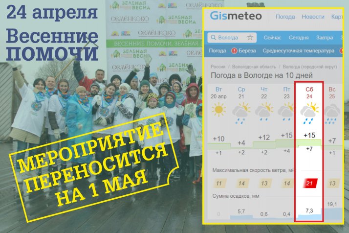 В этой связи принято решение о переносе мероприятия "Весенние помочи" с 24 апреля на 1 мая 2021 года.