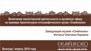 В рамках XVII Межрегиональной выставки туристского сервиса и технологий гостеприимства «Ворота Севера» состоялся семинар «Включение волонтёрской деятельности в музейную сферу на примере Архитектурно-этнографического музея Вологодской области». Интерес и внимание к теме не случаен, ведь 2018 год объявлен годом добровольничества и волонтёрства.