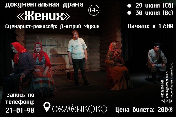 29 и 30 июня в 17-00 в музее «Семенково» состоится премьера антропологического спектакля «Жених».