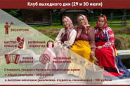 Уважаемые посетители! Приглашаем провести эти выходные в музее под открытым небом «Семёнково»! Ждём вас 5 и 6 августа на мероприятиях «Клуба выходного дня»!