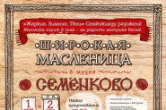 1 и 2 марта 2014 года ждём всех в музей «Семёнково» на раздольный русский праздник «Широкая Масленица»! Испокон веков принято на масленицу силою меряться, в ловкости состязаться, землю пробуждать от зимнего сна. Вот и на этот раз неугомонный кот Семён, вдохновлённый рассказами об олимпиаде, решил устроить Семёнкиаду!