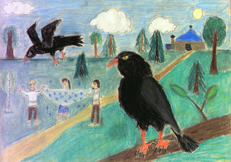 Решили как-то силы темные стихиями завладеть, все месяцы перепутать. Вздумали они грязь, да уныние на землю-матушку наслать, засухи, холода, стужи лютые напустить. И откуда не возьмись, прилетели птицы черные, птицы черные - птицы страшные… Стали они секреты повсюду выведывать, во дворец Мороза заглядывать. Так и норовят пробраться, золотыми письменами, да волшебными грамотами завладеть...