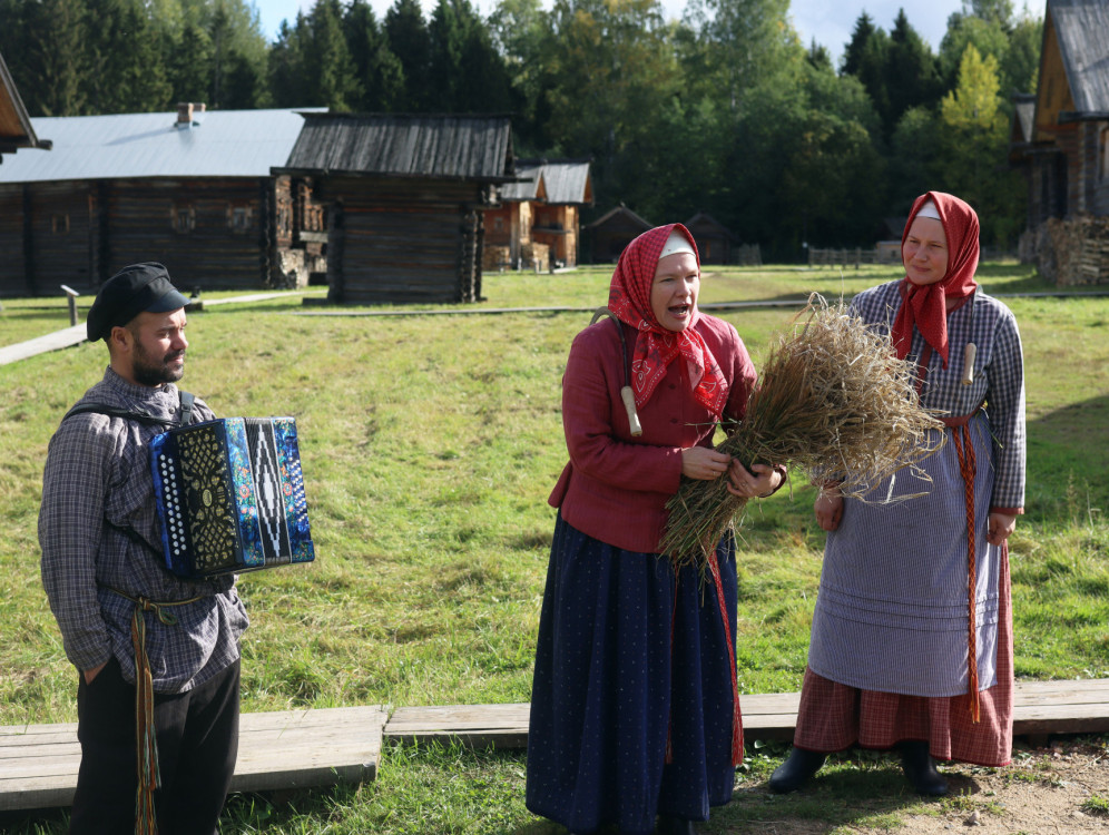 Наконец пришла пора сбора урожая! Жители деревни дожинают с полей да все по уму делают, как традиция того требует: последнему снопу почет и внимание – нарядят и в красный угол поставят… А на Семенов день так надобно уж и мух на зиму «похоронить».