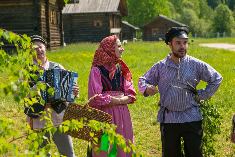 В программе: украшение деревенской улицы берёзками, крашение яиц, обход дворов, «кумление», качание на качелях.